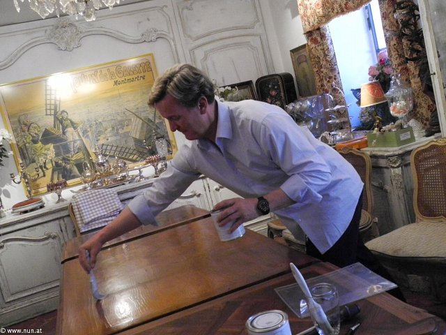 Das ist er: Richard Baumgartner, Künstler und Seele der Carrà 18 und Perfektionist. Damit es die GästInnen bei den Workshops noch feiner haben, verpasst er im Rhythmus von Nana Mouskouri's weisse Rosen noch schnell den letzten Schliff. So macht arbeiten Spaß!